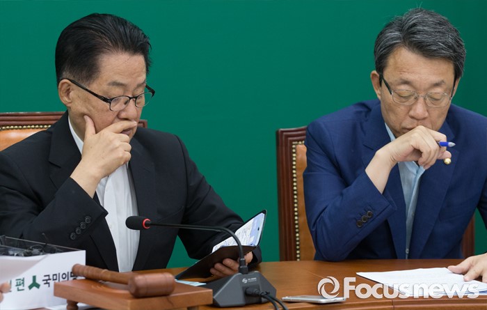 (서울=포커스뉴스) 28일 오전 서울 여의도 국회에서 열린 국민의당 원내정책회의에 참석한 박지원(왼쪽) 비상대책위원장과 김성식 정책위의장이 생각에 잠겨 있다.