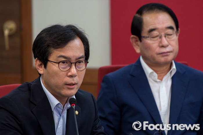 (서울=포커스뉴스) 김영우 새누리당 의원이 28일 오전 서울 여의도 새누리당사에서 열린 혁신비상대책위원회의에 참석해 발언 하고 있다.