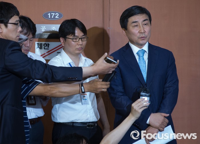 (서울=포커스뉴스) 이종걸 더불어민주당 의원이 28일 오전 서울 여의도 국회에서 전당대회 당대표 출마 기자회견을 마친 뒤 취재진 질문에 답하고 있다.