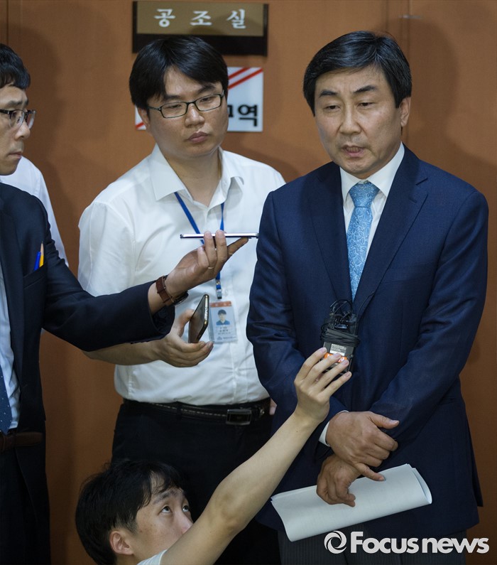| △ 취재진 질문 답하는 더민주 이종걸 |