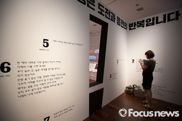 (서울=포커스뉴스) 28일 오후 서울 용산구 국립한글박물관에서 열린 기획특별전 '광고 언어의 힘' 언론 간담회에서 참석자들이 다양한 광고를 살펴보고 있다. 개화기부터 현재까지 광고의 130여년 역사를 우리말과 우리글의 관점에서 풀어낸 이 기획특별전은 7월 28일부터 11월 27일까지 열린다.