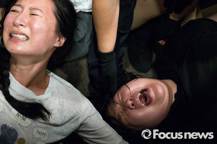 (서울=포커스뉴스) '화해·치유 재단'이 공식 출범한 28일 오전 서울 중구에 위치한 한 건물에서 열린 재단 출범 이사장 기자간담회장에서 재단 출범에 반대하는 대학생들이 회견장을 점거, 농성을 벌이고 있다.