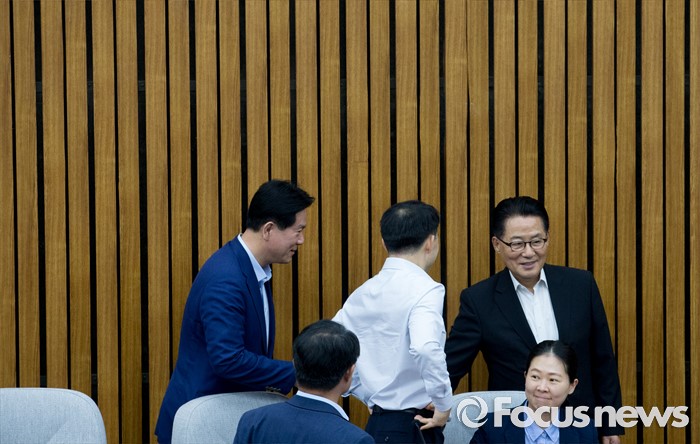 (서울=포커스뉴스) 28일 오후 서울 여의도 국회에서 열린 국민의당 비공개 의원총회에 참석한 박지원 비상대책위원장이 의원들과 인사하고 있다. 검찰은 이날 김수민, 박선숙, 박준영 의원에 대한 영장 재청구를 신청했다.