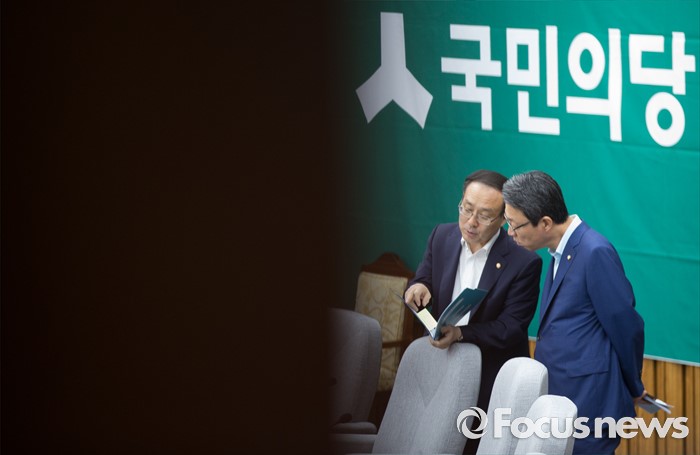 (서울=포커스뉴스) 28일 오후 서울 여의도 국회에서 열린 국민의당 비공개 의원총회에 참석한 김성식(오른쪽) 정책위의장과 오세정 의원이 대화하고 있다. 검찰은 이날 김수민, 박선숙, 박준영 의원에 대한 영장 재청구를 신청했다.