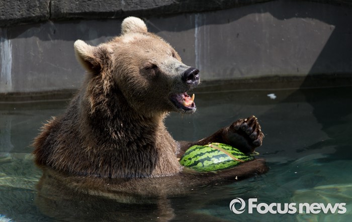(과천=포커스뉴스) 28일 오후 경기도 과천 서울동물원에서 불곰이 얼음과일을 먹고 있다.