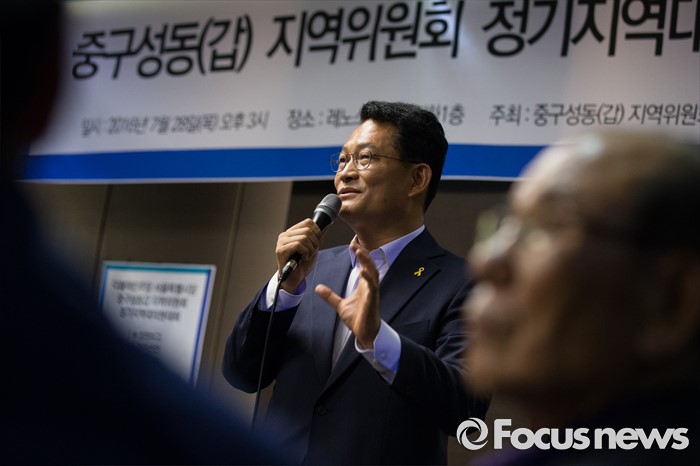 (서울=포커스뉴스) 더불어민주당 송영길 의원이 28일 오후 서울 성동구 레노스블랑쉬 웨딩홀에서 열린 서울 중구·성동갑 지역대의원대회에서 발언하고 있다.