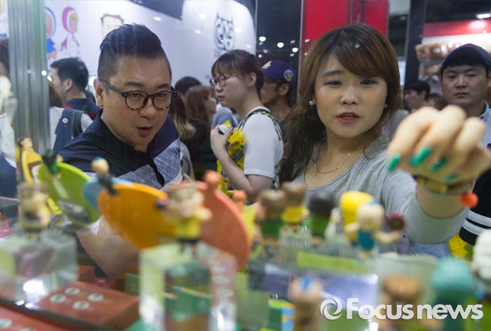 (서울=포커스뉴스) 28일 오후 서울 강남구 코엑스에서 열린 2016 서울키덜트페어에서 시민들이 피규어를 바라보고 있다. 키덜트페어는 7월 28일부터 31일까지 나흘간 진행되며 만화, 영화, 장난감 캐릭터 등이 다양한 모습으로 전시되어 있다.
