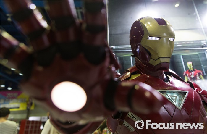 (서울=포커스뉴스) 28일 오후 서울 강남구 코엑스에서 열린 2016 서울키덜트페어에서 아이언맨 코스프레를 한 시민이 포즈를 취하고 있다. 키덜트페어는 7월 28일부터 31일까지 나흘간 진행되며 만화, 영화, 장난감 캐릭터 등이 다양한 모습으로 전시되어 있다..