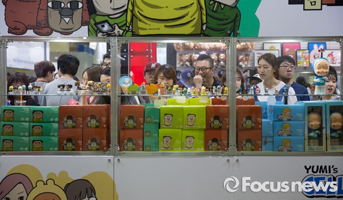 (서울=포커스뉴스) 28일 오후 서울 강남구 코엑스에서 열린 2016 서울키덜트페어에서 시민들이 피규어를 바라보고 있다. 키덜트페어는 7월 28일부터 31일까지 나흘간 진행되며 만화, 영화, 장난감 캐릭터 등이 다양한 모습으로 전시되어 있다.