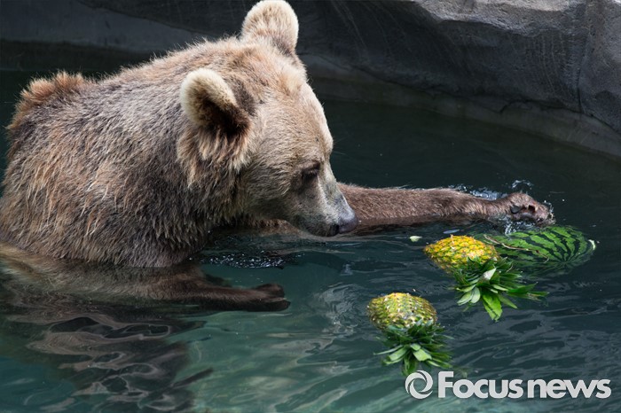 (과천=포커스뉴스) 28일 오후 경기도 과천 서울동물원에서 불곰이 얼음과일을 먹고 있다.