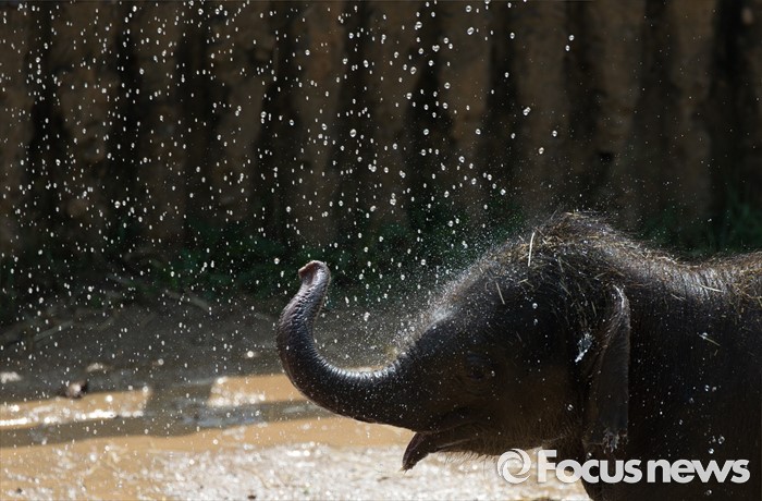 (과천=포커스뉴스) 28일 오후 경기도 과천 서울동물원에서 아기 코끼리가 물줄기를 맞으며 더위를 식히고 있다.