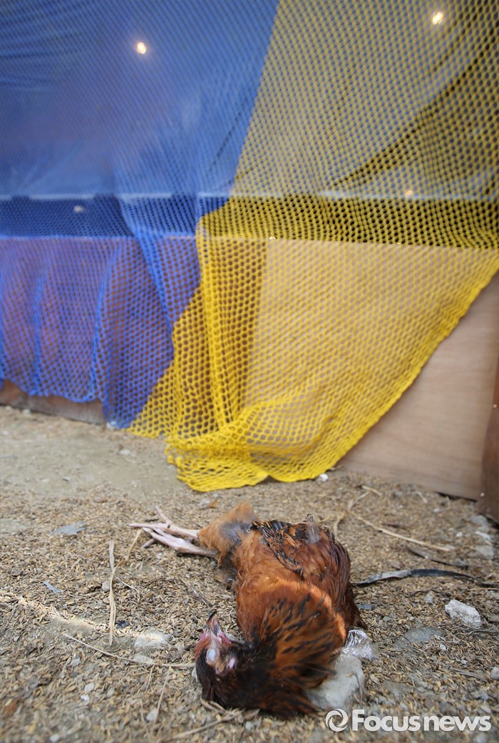 (괴산=포커스뉴스) 폭염으로 가축 폐사가 늘고있는 가운데 28일 오후 충북 괴산의 양계농가에서 닭이 폐사돼 있다.