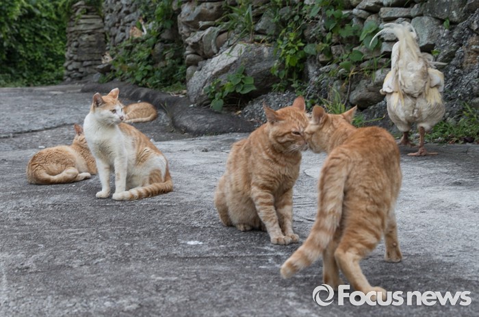 (여서도=포커스뉴스) 전남 완도군 청산면 여서도에서 한적한 도로를 점거한 길냥이가 잎맙춤을 하고 있다.