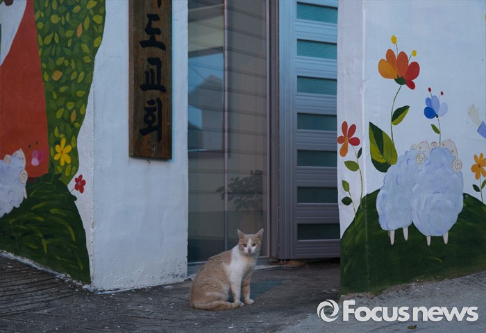 (여서도=포커스뉴스) 길냥이 한마리가 전남 완도군 청산면 여서도의 여서리 교회앞에서 이따금 지나가는 사람을 구경하고 있다.