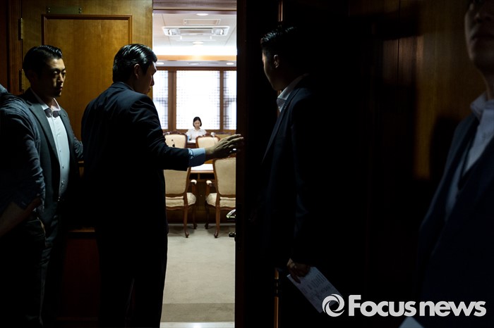 (서울=포커스뉴스) 29일 오전 서울 종로구 정부서울청사에서 열린 국가정책조정회의에 관계자들이 회의장 문을 닫고 있다.