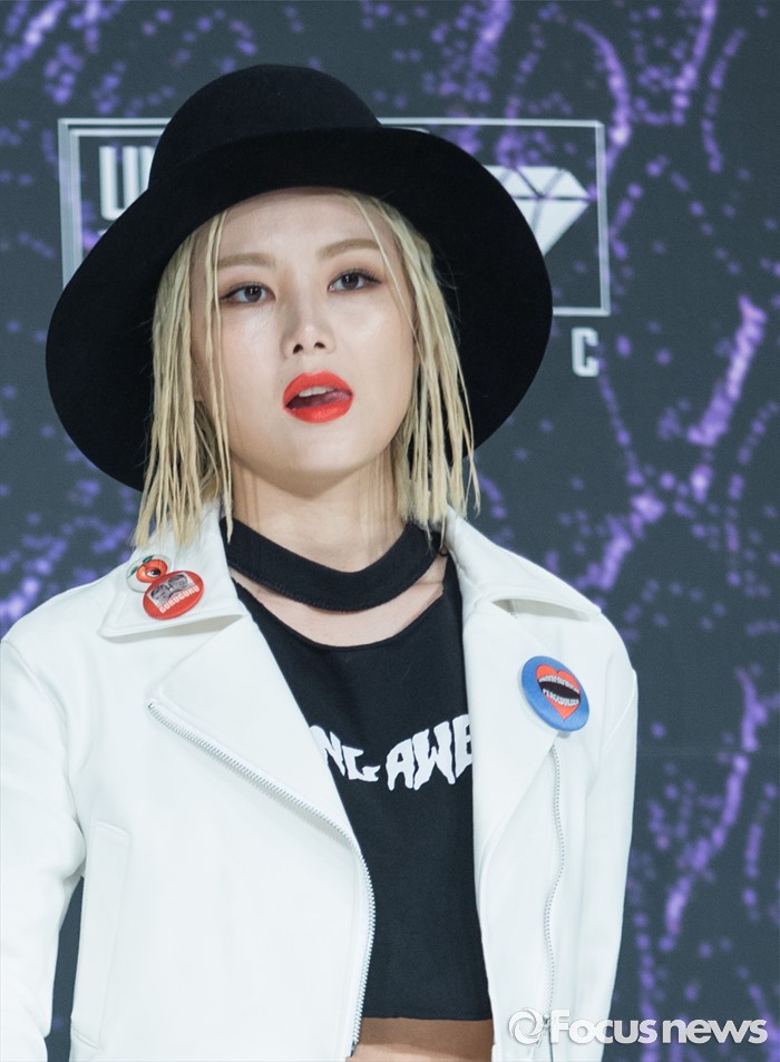 (서울=포커스뉴스) 29일 오전 서울 영등포구 타임스퀘어 아모리스홀에서 열린 Mnet '언프리티 랩스타 3' 제작발표회에 참석한 래퍼 미료가 포토타임을 갖고 있다.