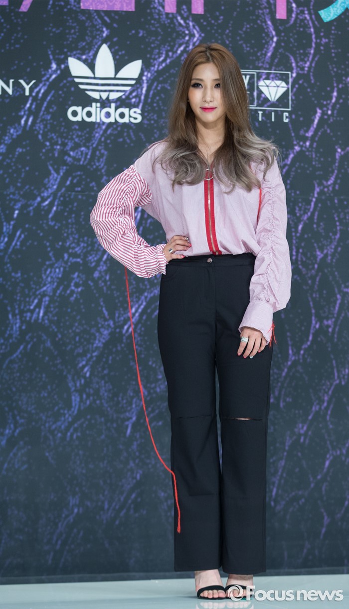 (서울=포커스뉴스) 29일 오전 서울 영등포구 타임스퀘어 아모리스홀에서 열린 Mnet '언프리티 랩스타 3' 제작발표회에 참석한 래퍼 자이언트 핑크가 포토타임을 갖고 있다.