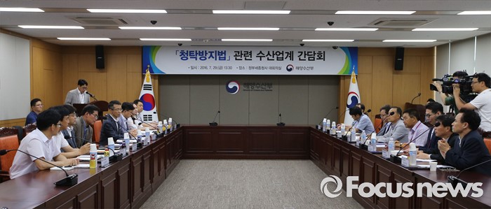 (세종=포커스뉴스) 서장우 해양수산부 수산정책국장이 29일 오후 세종시 정부세종청사 해수부 대회의실에서 열린 청탁방지법(김영란법) 관련 수산업계 간담회를 주재하고 있다.