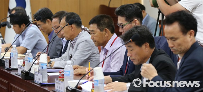 (세종=포커스뉴스) 서장우 해양수산부 수산정책국장 주재로 29일 오후 세종시 정부세종청사 해수부 대회의실에서 열린 청탁방지법(김영란법) 관련 수산업계 간담회에 참석한 수산업종사자들이 굳은 표정으로 간담회에 참석하고 있다.