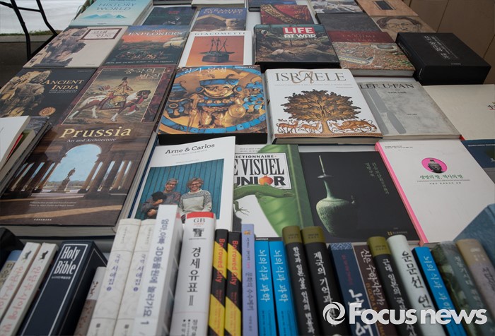 (서울=포커스뉴스) 29일 오전 서울 여의도 한강공원 마포대교 밑에서 열린 2016 한강몽땅 '지상 최대 헌책방 축제'에 다양한 책들이 전시되어 있다.