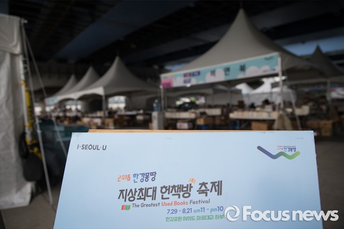 (서울=포커스뉴스) 29일 오전 서울 여의도 한강공원 마포대교 밑에서 2016 한강몽땅 '지상 최대 헌책방 축제'가 열리고 있다.