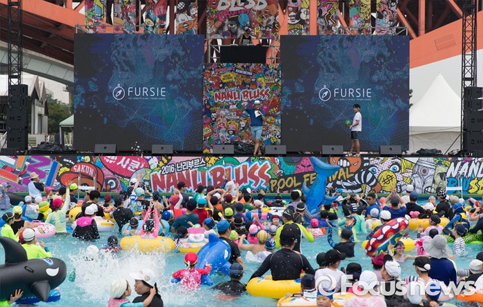 (서울=포커스뉴스) 30일 오전 서울 마포구 망원한강공원 수영장에서 열린 2016 난리부르스 풀 페스티벌을 찾은 시민들이 물놀이를 즐기고 있다.