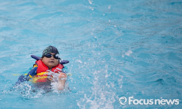 (서울=포커스뉴스) 30일 오전 서울 마포구 망원한강공원 수영장을 찾은 시민들이 물놀이를 즐기고 있다.