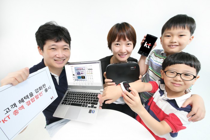 (서울=포커스뉴스) KT는 가족간 모바일 요금 합산 금액에 따라 결합 할인을 제공하는 ‘총액 결합할인’을 8월1일 출시한다. 기존에는 모바일 결합 회선에 따라 할인액이 달라졌다면, 신규 요금제에서는 모바일의 기본요금을 합산한 금액에 따라 전체 모바일 할인 금액 및 인터넷 할인 금액이 결정된다.