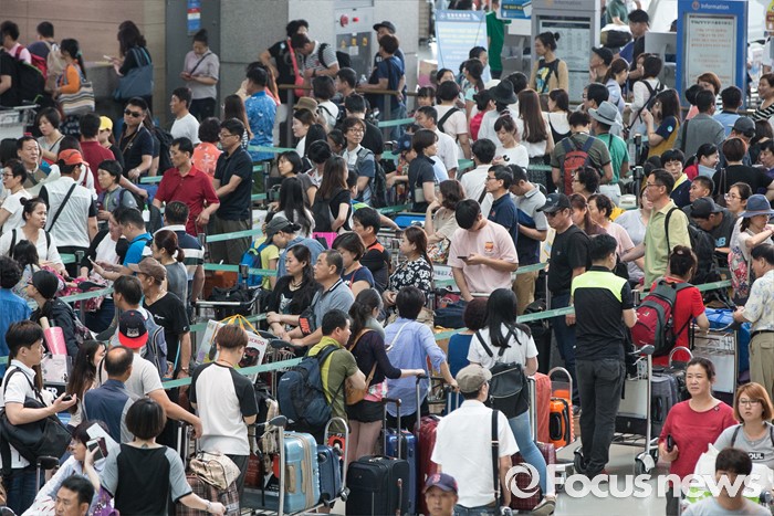 (인천공항=포커스뉴스) 본격적인 휴가철을 맞은 31일 오전 인천국제공항 출국장이 여행객들로 붐비고 있다. 인천국제공항은 지난 30일 총 19만 3420명의 이용객들이 공항을 이용해 이용객수 1위를 갱신했다.