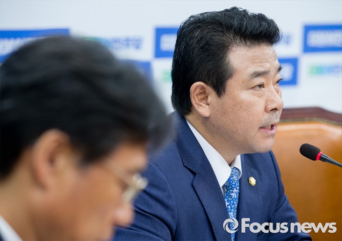 (서울=포커스뉴스) 1일 오전 서울 여의도 국회에서 열린 더불어민주당 원내대책회의에 참석한 박정(오른쪽) 원내부대표가 김영란법 관련 발언하고 있다.