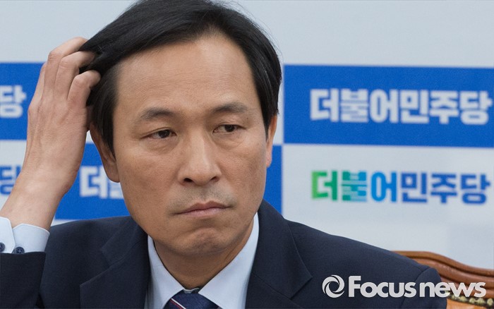 (서울=포커스뉴스) 1일 오전 서울 여의도 국회에서 열린 더불어민주당 원내대책회의에 참석한 우상호 원내대표가 머리를 만지고 있다.