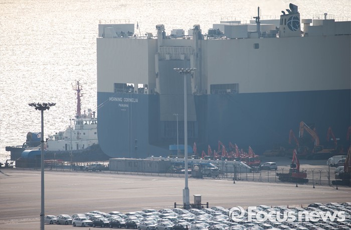 (평택=포커스뉴스) 환경부의 인증취소 및 판매정지 행정처분으로 폭스바겐 코리아가 퇴출수순을 밟고 있는 3일 오후 폭스바겐 차량을 싣고 독일 브레멘하벤에서 출항한 모닝코넬리아호가 경기도 평택항에 도착, 접안되어 있다.