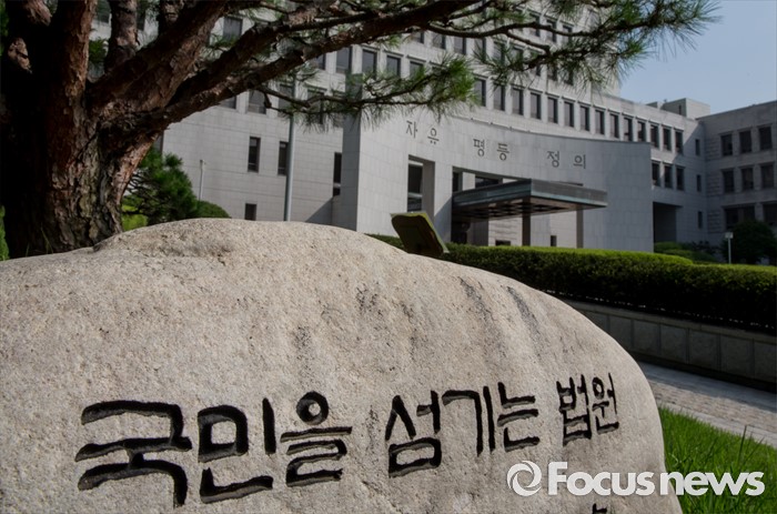 (서울=포커스뉴스) 현직 부장판사가 오피스텔 성매매 혐의로 현장에서 적발돼 파문이 이는 가운데 4일 오전 서울 서초구 대법원 기념비에 '국민을 섬기는 법원'이라는 문구가 적혀 있다.