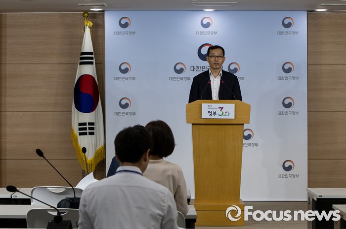 (서울=포커스뉴스) 서울시 청년수당 지급이 시작된 3일 오전 서울 종로구 정부서울청사 브리핑룸에서 강완구 보건복지부 사회보장위원회 사무국장이 보건복지부의 입장을 밝히고 있다.