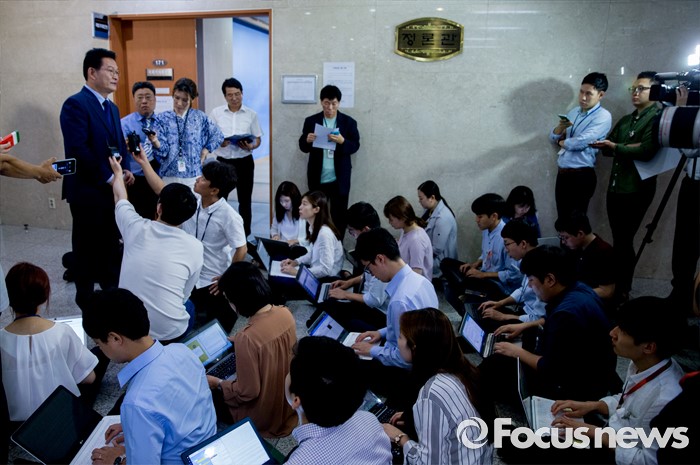 | △ 취재진 질문 답하는 송영길 |