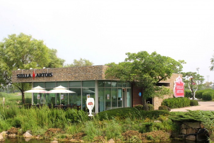 한편, '스텔라'는 전세계 90여개 국가에서 판매되는 벨기에 1위, 세계 4대 맥주다. 기분 좋은 쌉쌀한 맛과 청량한 끝 맛이 어우러지는 것이 특징이다. 전용잔인 '챌리스'에 '스텔라'만의 9단계에 걸친 음용법을 따라 마시면 최상의 맛과 향을 경험할 수 있다.인천 영종도 '스카이72'의 레이크 코스 내 그늘집에 마련된 '스텔라' 브랜드 전용공간 전경.<사진제공=오비맥주>