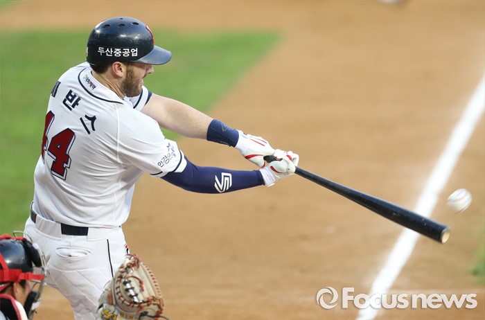 | △ 희생플라이 날리는 두산 에반스 |