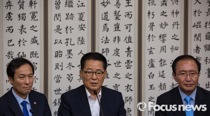 (서울=포커스뉴스) 박지원(가운데) 국민의당 원내대표가 3일 오전 서울 여의도 국회에서 열린 원내대표 회동에 참석해 모두발언 하고 있다.