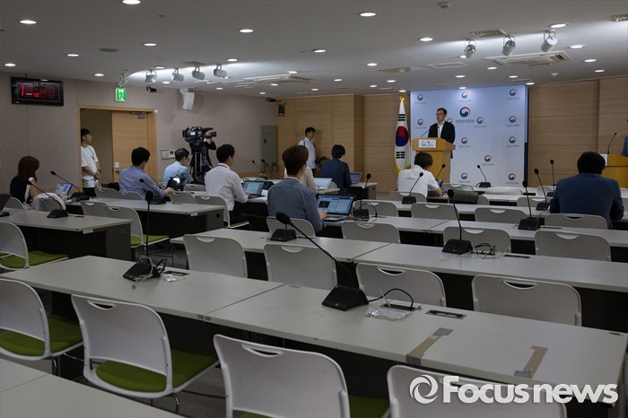 (서울=포커스뉴스) 서울시 청년수당 지급이 시작된 3일 오전 서울 종로구 정부서울청사 브리핑룸에서 강완구 보건복지부 사회보장위원회 사무국장이 보건복지부의 입장을 밝히고 있다.