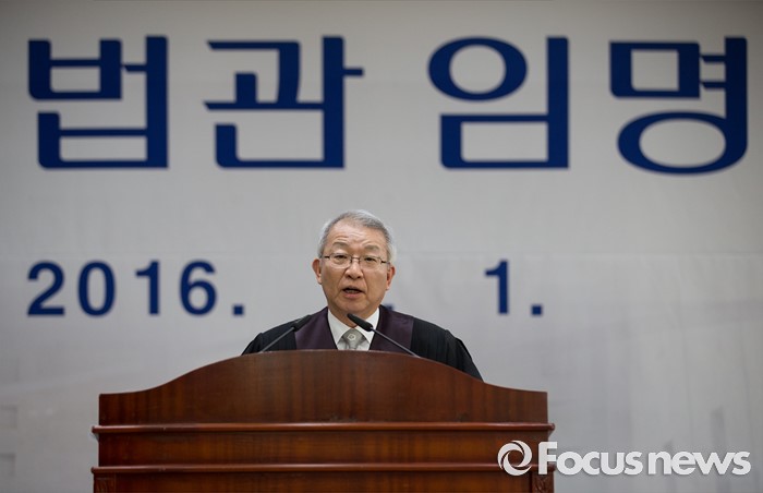 (서울=포커스뉴스) 1일 오전 서울 서초동 대법원에서 열린 신임 법관 임명식에서 양승태 대법원장이 인사말을 하고 있다.