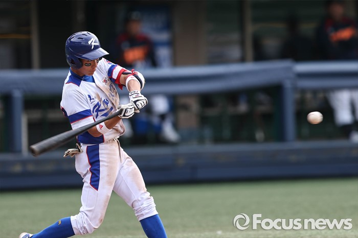 (서울=포커스뉴스) 1일 오후 서울 양천구 목동종합운동장에서 열린 2016 세계 청소년 야구 대회 대한민국과 일본 A조 경기 2회말 2사 1루 상황, 대한민국 변중섭이 홈런을 치고 있다.