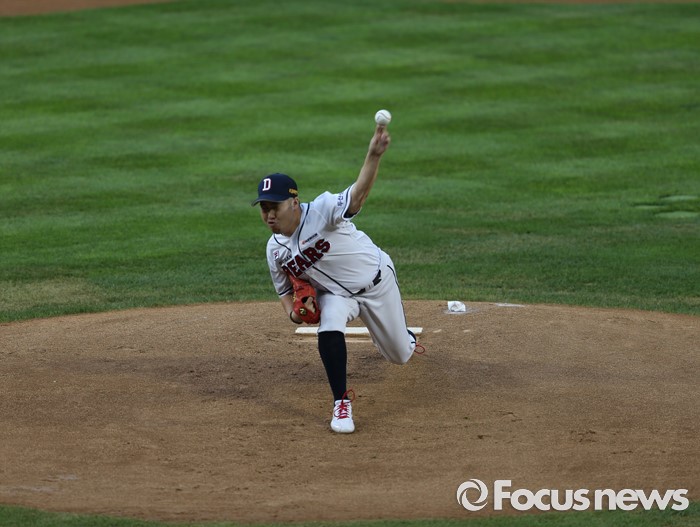 | △ 첫 볼 던지는 유희관 |