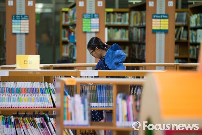 (서울=포커스뉴스) 2일 오전 서울 종로구 정독도서관에서 한 어린이가 읽을 책을 고르고 있다.