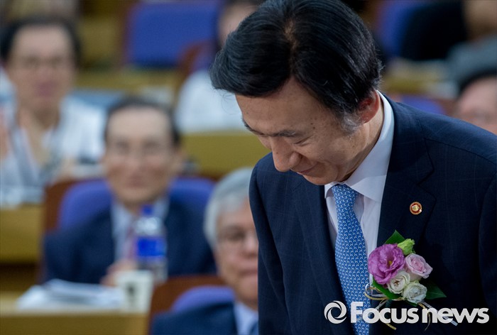 (서울=포커스뉴스) 3일 오전 서울 여의도 국회 의원회관에서 열린 공공외교법 발효기념 심포지엄에 참석한 윤병세 외교부 장관이 인사한 뒤 자리에 앉고 있다.