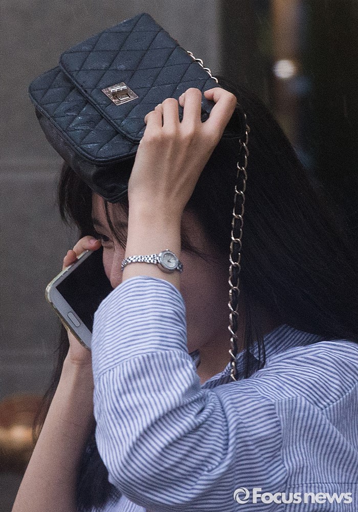 | △ '머리 위 작은 가방으로 비 피하기' |