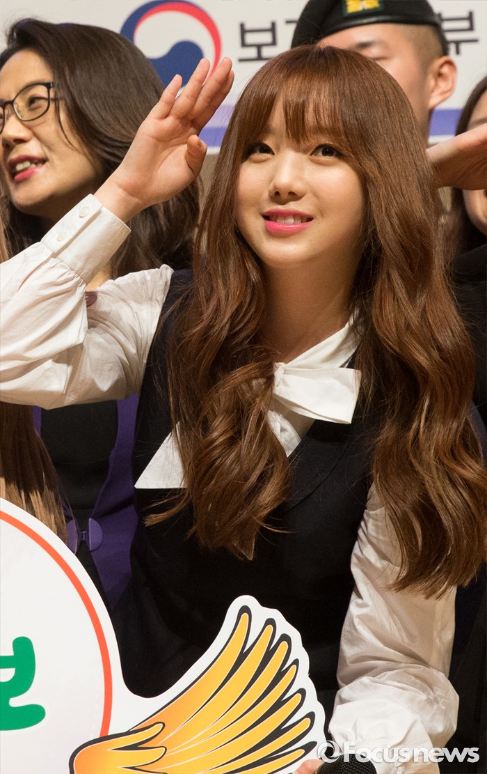 (서울=포커스뉴스) 2일 오전 서울 용산구 국방부에서 열린 '군인 금연 홍보 엔젤스 위촉식'에서 금연 홍보대사로 위촉된 그룹 러블리즈 케이가 거수경례를 하고 있다.