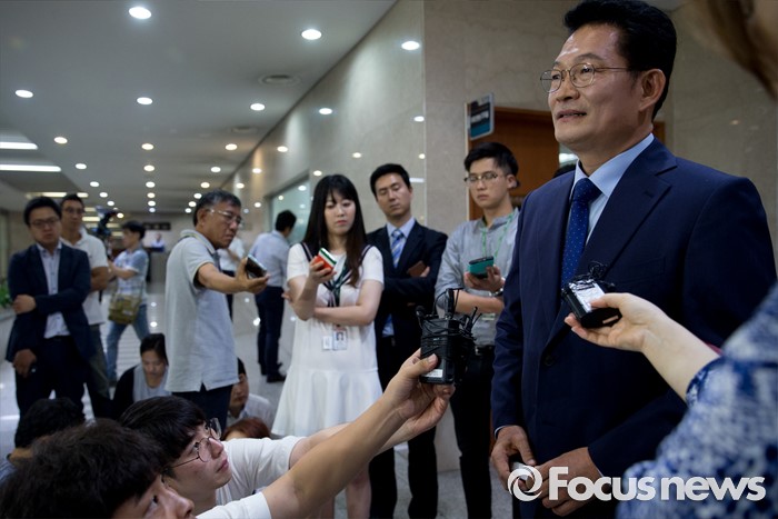 (서울=포커스뉴스) 전당대회 출마를 송영길 더불어민주당 의원이 4일 오전 서울 여의도 국회 정론관에서 공약 발표 기자회견을 마친 뒤 취재진 질문에 답하고 있다.