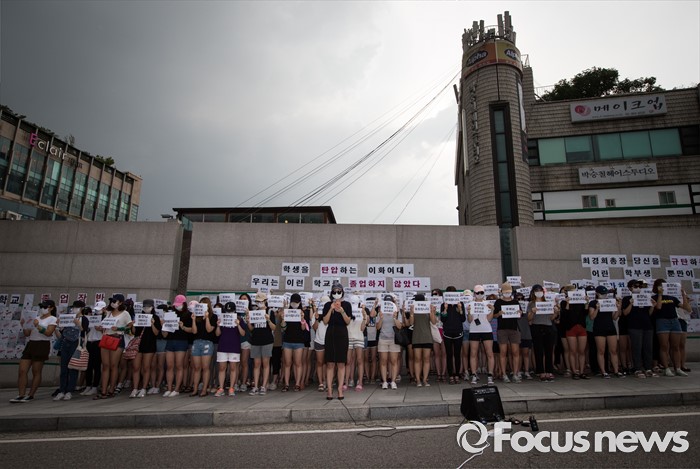(서울=포커스뉴스) 미래라이프 대학 설립에 반대하는 이화여대 졸업생들 및 재학생들이 2일 오후 서울 서대문구 이화여자대학교 정문 앞에서 졸업장 반납 시위를 하고 있다.