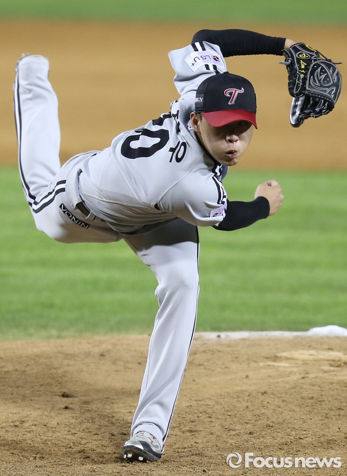 (서울=포커스뉴스) 3일 서울 잠실구장에서 열린 2016 프로야구 LG-두산 경기에서 9회말 LG의 마무리투수 임정우가 다이내믹한 폼으로 투구하고 있다.