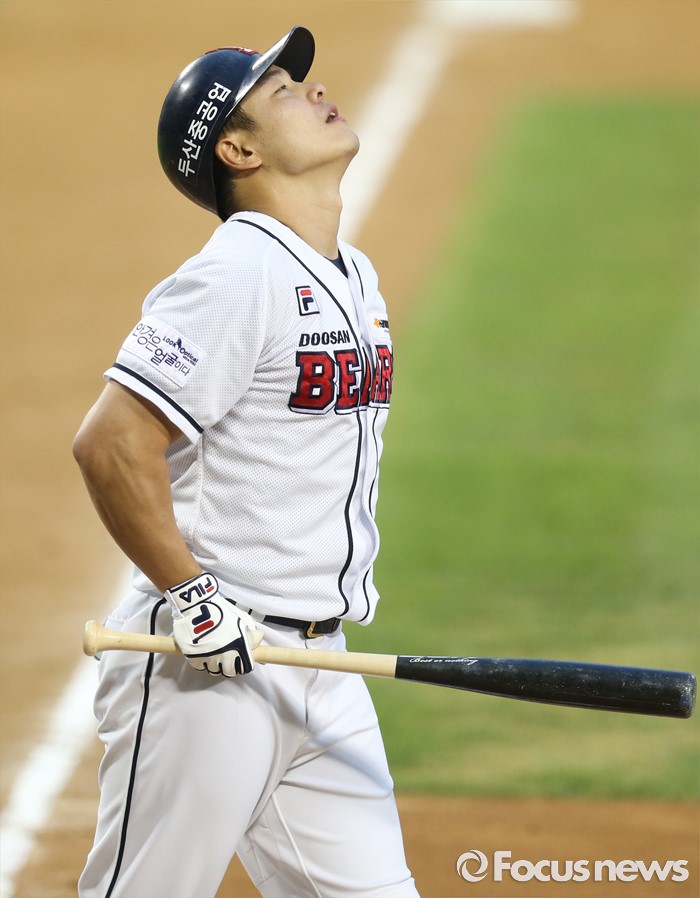 (서울=포커스뉴스) 3일 서울 잠실구장에서 열린 2016 프로야구 LG-두산 경기 2회말 2사 1루에서 두산 민병헌 루킹 삼진을 당하고 아쉬움을 삼키고 있다.